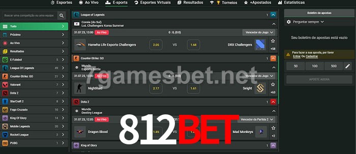 O 812Bet oferece uma grande seleção de opções de apostas em e-sports com probabilidades competitivas